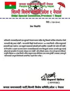 साे समितिका प्रदेश १ अध्यक्ष नरेश विश्वकर्मा क्षितिजले प्रेस विज्ञप्ति जारी गरि राजावादीहरुकाे उक्त हर्कतकाे घाेर निन्दा एवम् भर्त्सना गरेका छन् ।