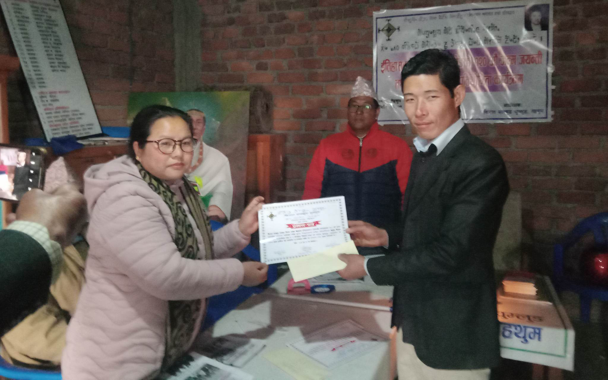 प्रतियोगितामा प्रथम हुनेले नगद रु ५ हजारको साथमा प्रमाण पत्र प्राप्त गरेको छ भने दोस्रो हुनेले नगद रु ३ हजारको साथमा प्रमाण पत्र, र तेस्रो हुनेले २ हजारको साथमा प्रमाण पत्र प्राप्त गरेको किरात याक्थुङ चुम्लुङ तेह्रथुमका अध्यक्ष सेसेहाङ हुक्पा चोङबाङले बतायनु भयो ।